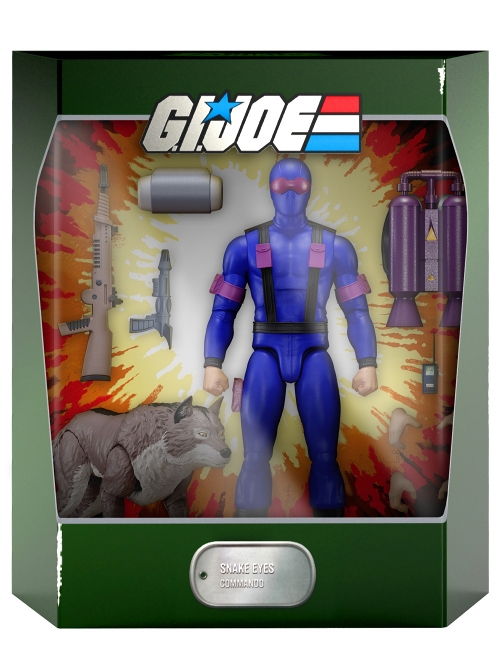 1960年代に販売をスタート、「アクションフィギュア」の祖とも言うべき「G.I.ジョー」。現在まで3.75インチから12インチなど、様々なサイズ展開で人気を博すこのシリーズが、スーパー7の「アルティメット」シリーズにも参戦!ラインナップしたのは「team G.I.JOE」の戦闘員で大人気キャラ、コードネーム「スネークアイズ」です。全身の可動ポイントにより、スネークアイズらしいアクティブなポージングも可能!相棒となる狼ティンバーも付属するので、シチュエーション再現の幅も広がります。付属する武器としてチョイスされたのはレーザーライフル、ピストルなど銃火器で、これはビンテージの「G.I.ジョー」をインスパイアしたもの。今では「刀」キャラとしての印象が強いスネークアイズですが、このセレクトにスーパー7の「G.I.ジョー」愛が感じられます。