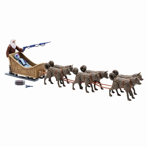 北極の任務が過酷すぎて、倒れてしまったスネークアイズ。そこに救助に現れたのは、犬ぞり乗ったサンタクロース…ではなくウッズマン!最新武装のライフル装備した、サンタクロース。パッケージのイラストが物騒すぎる。プレゼントは鉛玉だ、レーザーだと温まるな。ソリの中に横になるスネークアイズは、どう見ても瀕死なのが分かるなど、情報量が多すぎる設定が最高です。