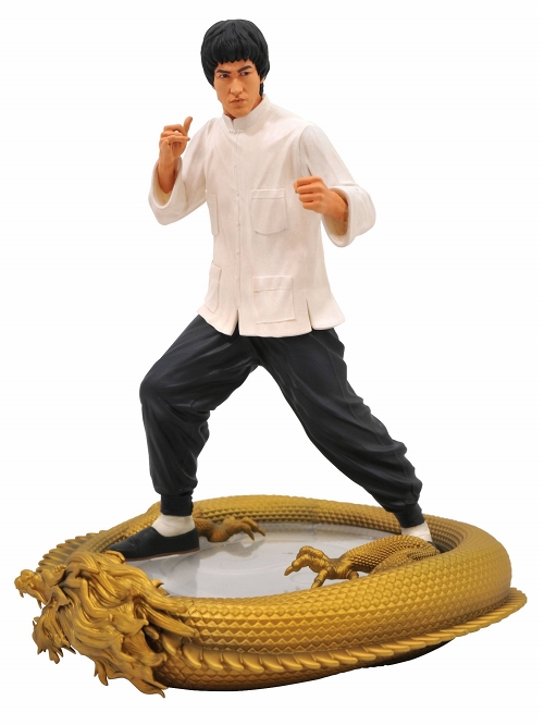 ダイアモンドセレクトトイのスタチューシリーズ「プレミアコレクション」に、世界中の映画ファン、格闘技ファンから今なお愛され続けている「李小龍」ブルース・リーがラインナップしました。生誕80周年のアニバーサリーを迎えるブルース・リーを、映画『燃えよドラゴン』を思わせるカンフースーツ姿でスタチュー化です。上下が白と黒のカンフースーツと同じく、「白」と「黒」を使った陰陽のシンボルマークである「太陰太極図」を金色の龍が巻き付くという豪華なベースも雰囲気を引き立てます。