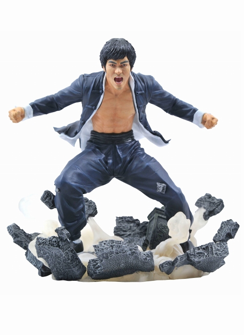 ダイアモンドセレクトトイによるPVCスタチューシリーズ「ギャラリー」の新作として、世界中の映画ファン、格闘技ファンから今なお愛され続けている「李小龍」ブルース・リーがラインナップしました。青い功夫服を着たブルース・リー、気合いを入れた瞬間をイメージしたポージングとなりました。このシリーズでアクセントとなっているエフェクトパーツは、ベース部にて。まるで「気」の放出で破壊されたような石畳として、このスタチューの迫力をさらに演出します。