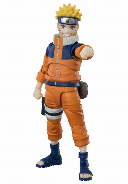 S.H.Figuarts『NARUTO-ナルト-』シリーズから、第四次忍界大戦を思い起こさせる「うずまきナルト」が初登場!交換用表情パーツは4種付属し、手首パーツではこぶし合わせ手が付属する他、右手の陽の印も細かく造形。飛雷神クナイを咥える顔や、手持ち用のクナイも付属しており、造形・可動をパワーアップしたナルトを最大限楽しむことが出来るセット内容!