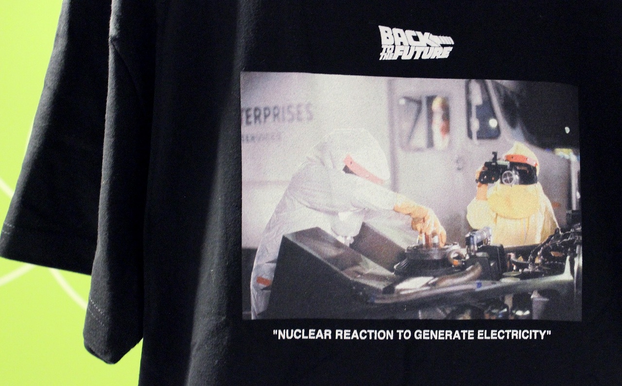 映画史に欠かす事の出来ない名作映画の一つ、未だ色褪せない『バック・トゥ・ザ・フューチャー』シリーズから、豆魚雷リミテッドエディションとして10種類のTシャツが登場!こちらはツインパインズモールでのデロリアン起動実験の際、盗んだプルトニウムを入れ替えるドクとその様子を撮影するマーティーの防護服姿がデザインされたラディエーション ドク&マーティTシャツ。立体化もされていながらも、今まで中々無かった防護服Ver.のドクとマーティーTシャツです。