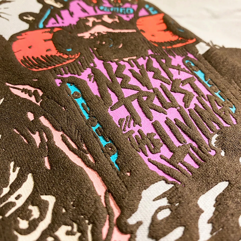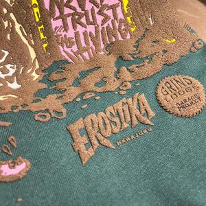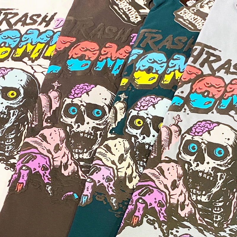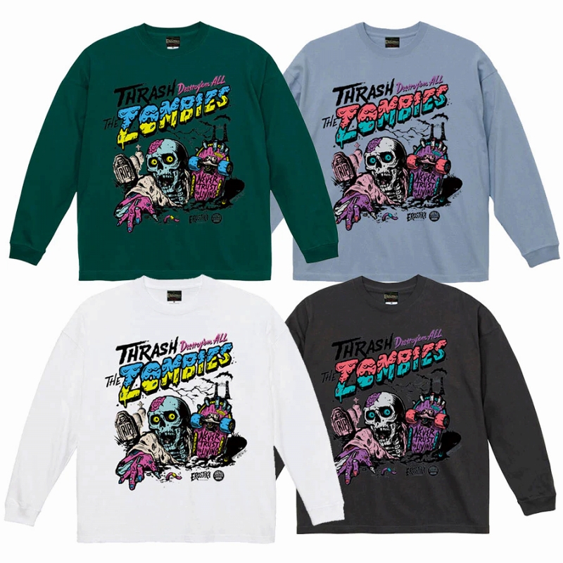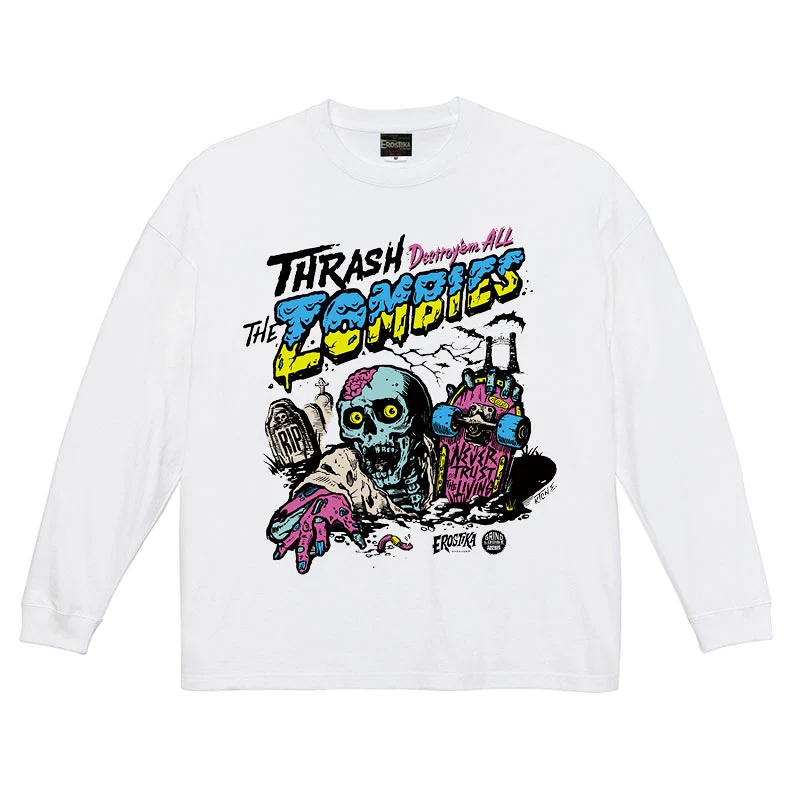 "CULT(熱狂)"、"CULTURE(文化)"、"ART(芸術)"を組み合わせ、東京から世界に発信していくプロジェクトとしてスタートした「TOKYO CULTUART by BEAMS」と唯一無二な魅力的なアートが、日本をはじめ世界で注目を集めているアーティスト、ロッキンジェリービーン氏がデザインを手掛けるブランド「EROSTIKA」がタッグを組み、恐怖映画創世記の1930年代〜スラッシャー映画全盛期の1980年代へと立ち戻り、改めてホラーの魅力を追求するべく開催された「HOUSE OF HORRORS」ポップアップショップ。こちらはKTCN氏によってデザインされたポップでホラーな80sスケートカルチャーを感じさせるゾンビデザイン。デザインのアウトラインは発泡プリントが施してあり、着るたびに味が出てきそうで、長く付き合える一枚になりそうです!ボディはブラック、ホワイト、ブルー、グリーンの4色展開。