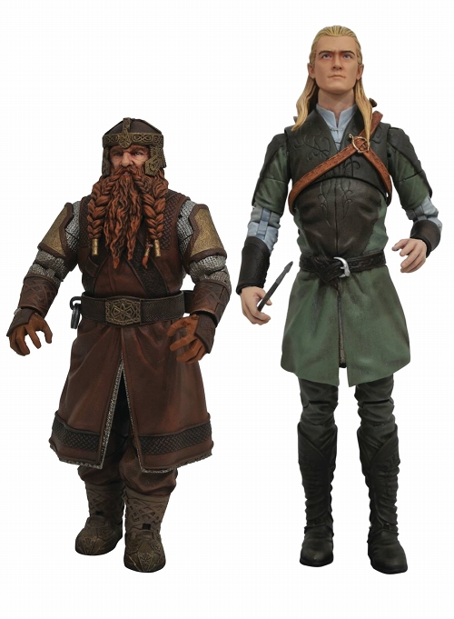 ダイアモンドセレクトトイのアクションフィギュアシリーズ「セレクト」の新作!J・R・R・トールキンの小説「指輪物語」を原作とし、ピーター・ジャクソン監督・共同脚本の基、壮大な三部作で画かれたファンタジー映画『ロード・オブ・ザ・リング』が仲間入り!シリーズ1としてラインナップするのは、劇中で名コンビぶりをみせたレゴラスとギムリです。7インチスケールで展開され、身長差も加味。それぞれ全身16個所可動で、付属する武器アクセサリーで様々なポージングが楽しめます。今回なんとビルドパーツも封入決定!対象フィギュアのパーツを集めることにより、同じスケールながら全高約33センチにもなる巨体のサウロンが完成します。