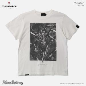 一度見たら忘れられない悪夢的な上位者「アメンドーズ」。イラストレーター・よしおか氏による迫力のアートを使用したデザインは、アメンドーズがこちら側を窺うように佇む姿を写真に捉えたような、品のある一枚。レギュラーカラーはホワイト、ヘザーグレー、インクブラックに、新たにバニラホワイトが加わった4色。いずれもプリントのインクを1色に絞り、よりシックで着回しやすい印象に生まれ変わりました。新色はクリーミーなバニラホワイトのボディにスミ色のインクでプリント。コントラストを抑え、より落ち着いた仕上がりになっています。